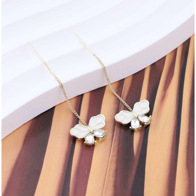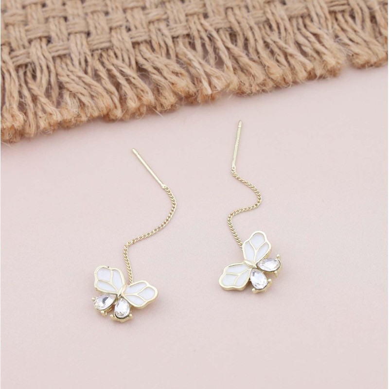 Atentuyi Gold Threading Earrings Long Thread Earrings Tassel Chain Dangle Earrings Bar Earrings Crystal Enamel CZ Butterfly Stud Earrings Thin Line Earrings Jewellery for Women and Girls, Crystal