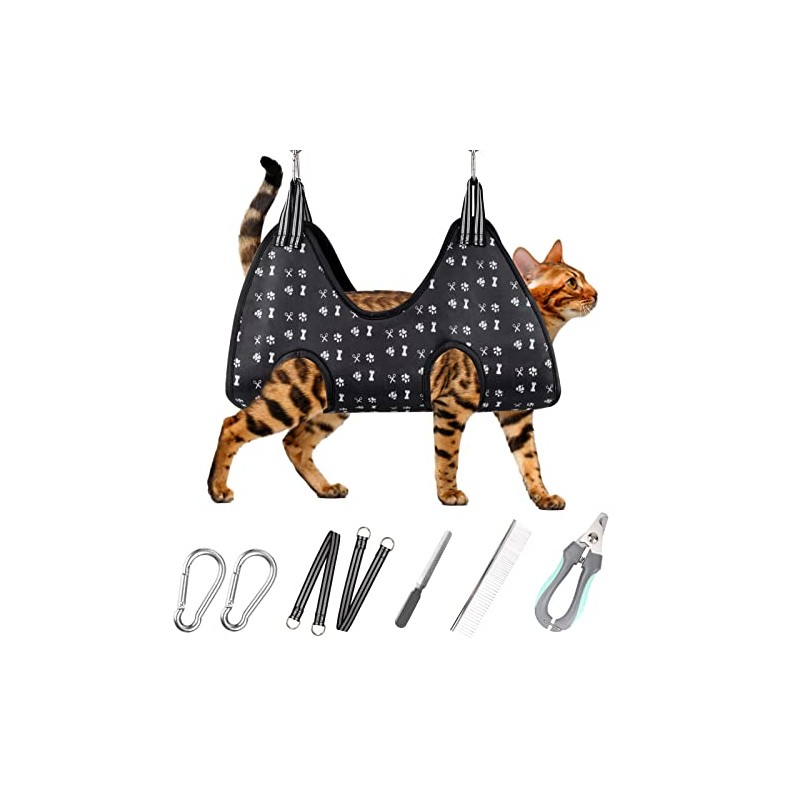 - ✂️[Professional Dog Grooming Kit] Dog grooming hammock for nail trimming come with nail clippers nail trimmer and comb, you can trim your pet's nails and grooming with half the effort. NO need to sedated your dog any more!