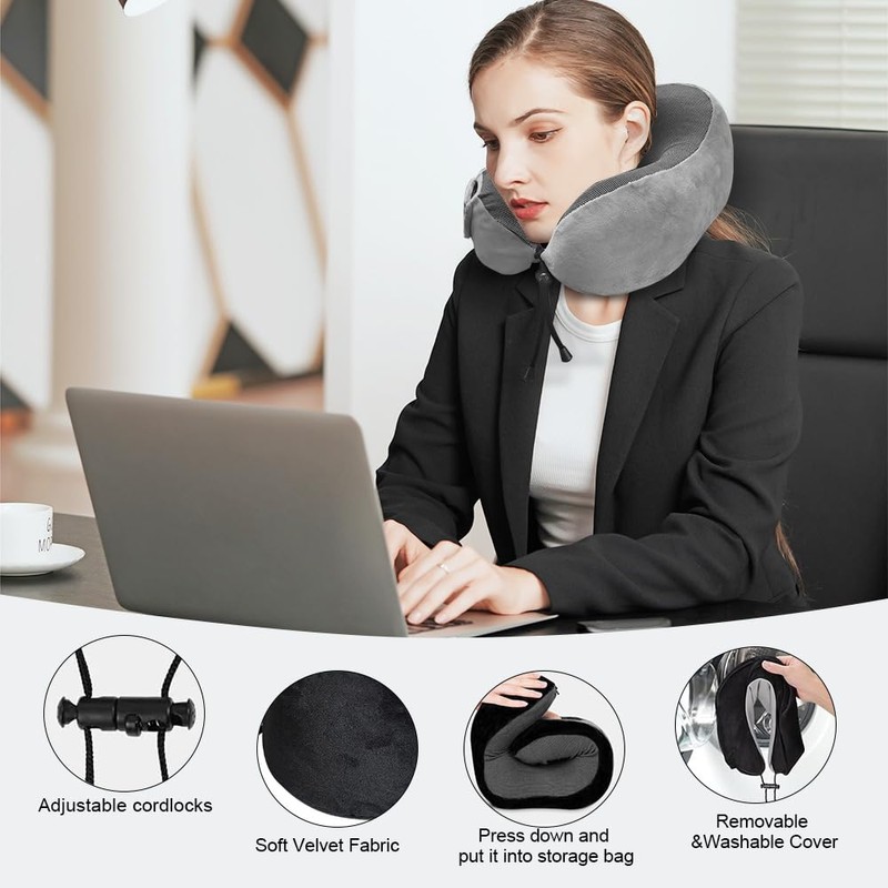 - 【Unmatched Neck Comfort】: Made entirely of soft, 100% pure memory foam, this neck pillow molds to the unique shape of your neck. It offers unbeatable comfort, easing neck strain and fatigue. Whether you're stuck sitting for hours at work, on a long flight, or just taking a quick nap, it's the ideal companion for ultimate relaxation.