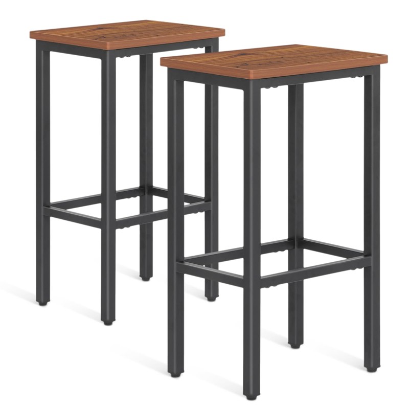 Athena Collection Bar Stools Set of 2, Counter Height Bar Stools Wooden Seat Metal Frame Barstool with Footrest Adjustable Feet Rectangular Stool Chairs for Kitchen, Pub, Dining Room, Black Brown
