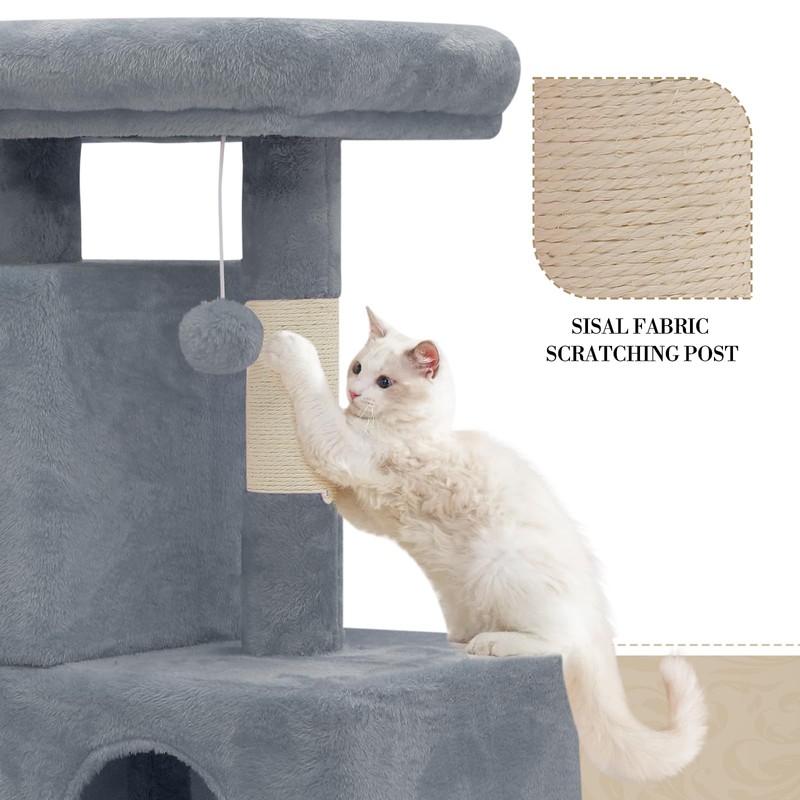 - Integrated Scratching Post: Cat tree tower with scratching post which was sisal-covered let your cat scratch and climb, satisfying their natural instincts while helping protect your furniture.