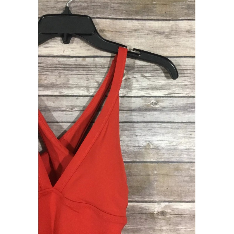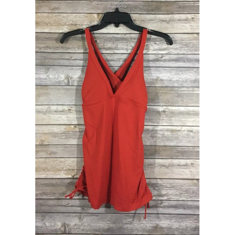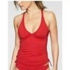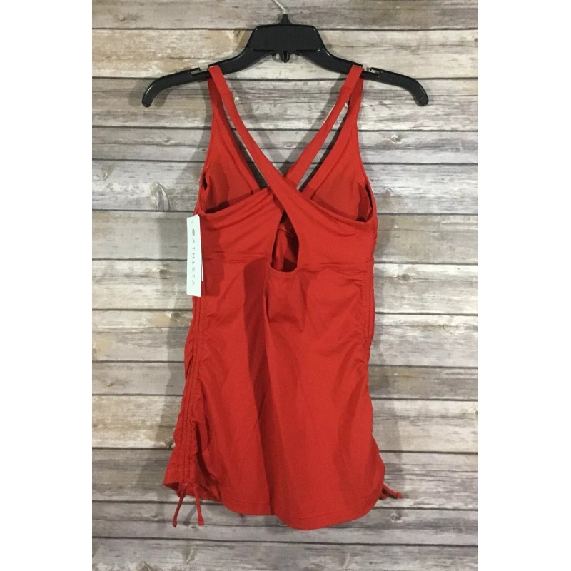 Athleta NWT Womens Side Scrunch Swimsuit Tank Top Small Red Solid Removable Pads