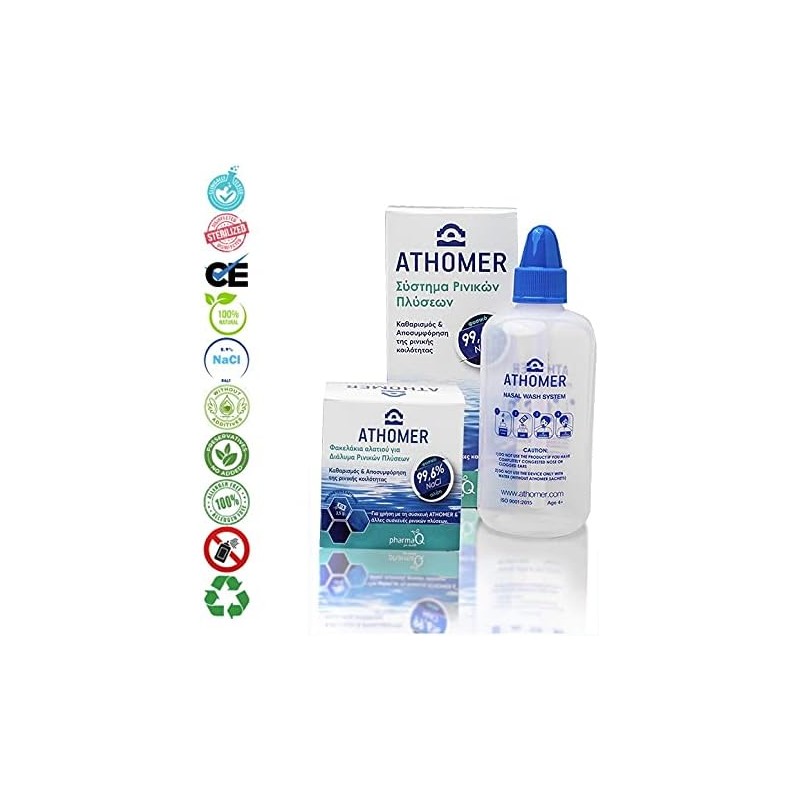 - ✅ NATURAL NASAL WASH SOLUTION | The Sinus Rinse Kit contains 250 ml bottle + 10 packs of high-quality Greek (Aegean Sea) which is naturally one of the best nasal decongestants. A complete nasal irrigation system for daily nasal care.