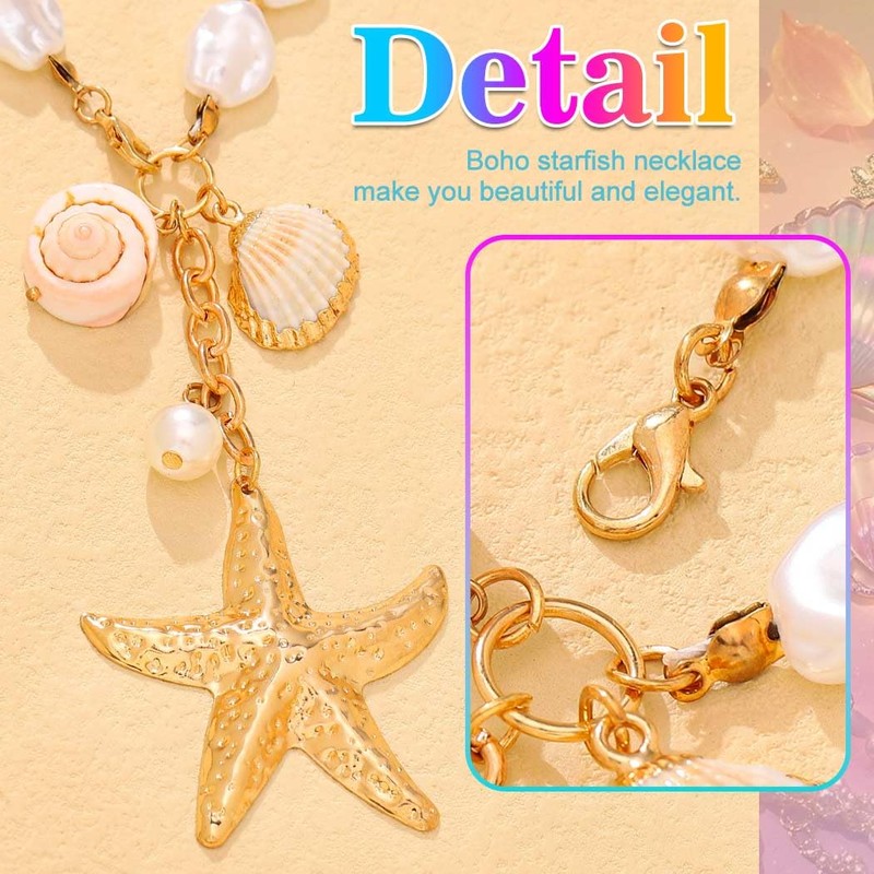 - Die Boho Muschelkette besteht aus einem Seesternanhänger,einer Perlenkette und einer Muschel.Das einzigartige Design und die wunderschöne Optik verleihen Ihnen einen Hauch von Glamour.