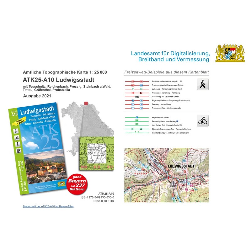 ATK25-A10 Ludwigsstadt (Amtliche Topographische Karte 1:25000): Teuschnitz, Reichenbach, Pressig, Steinbach a.Wald, Tettau, Gräfenthal, Probstzella, ... Amtliche Topographische Karte 1:25000 Bayern)