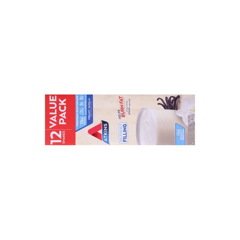 Enjoy Atkins Creamy Vanilla Protein Shakes. Each delicious creamy vanilla flavored protein shake delivers 15g of protein to satisfy your hunger and keep you moving. These low sugar*, low carb* creamy shakes are a great choice for when youre on the go but dont want to sacrifice great taste or settle for something with a ton of sugar or net carbs. Atkins Creamy Vanilla Protein Shakes are keto friendly*, a good source of fiber*, contain no artificial growth hormones, and have 2g of net carbs and 1g of sugar per serving*. *See Nutrition Facts for Calories and Saturated Fat Contents. Fiber: 9g Total Fat per serving. Low Sugar: 1g Total Sugar per serving. Not a low calorie food. Low Carb: 4g Total Carbs, 1g Net Carbs per serving. Keto Friendly: When used with Atkins ketogenic programs.