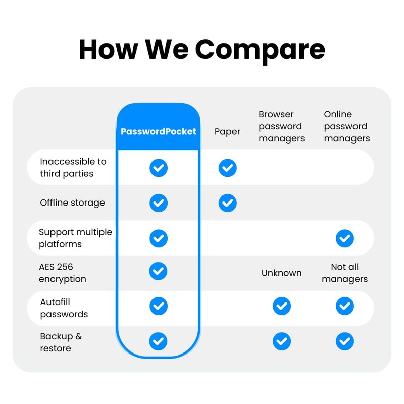- Offline Account Management: Store up to 1,000 sets of account credentials in PasswordPocket.