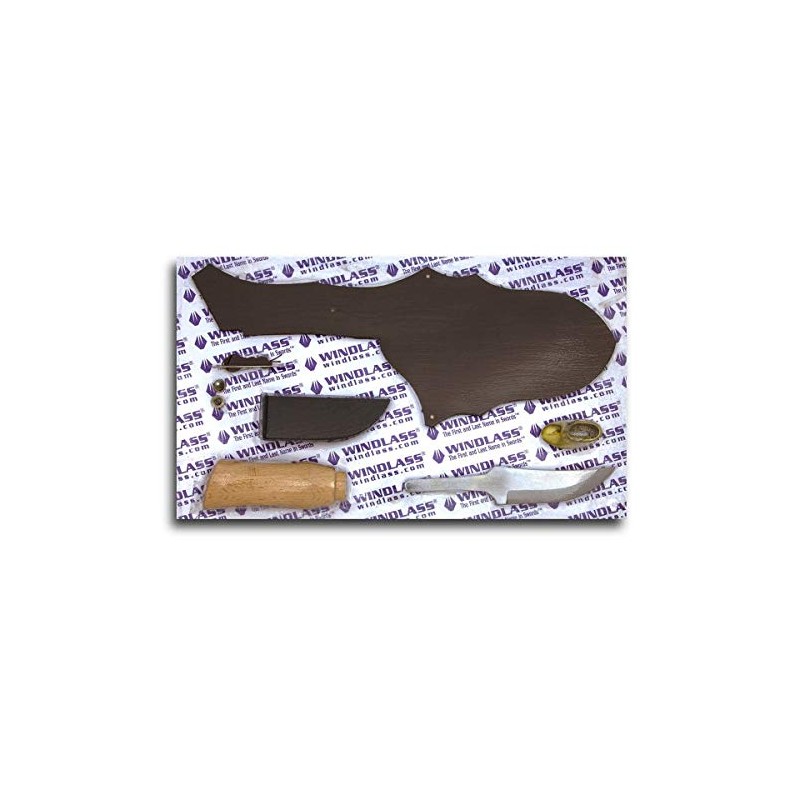 - Also includes with a leather needle and thread to stich the leather, a sheath rivet, and plastic inner sleeve reinforcement
