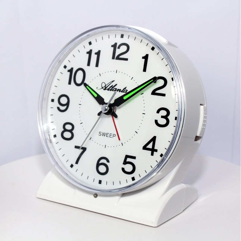 Atlanta Large Quartz Alarm Clock with Automatic Night Light Sensor Low Noise Quartz Analogue White - 2180/0