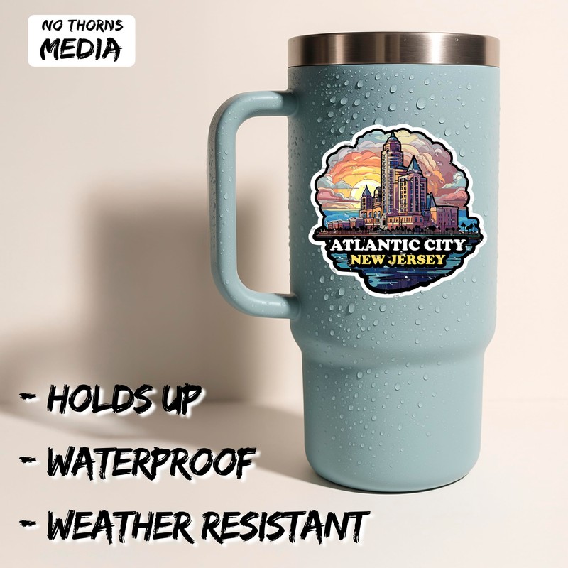 Atlantic City New Jersey Sticker 4 Inch - Waterproof Vinyl Decal for Laptop Water Bottle Car Tumbler - Durable Aesthetic Long-Lasting Stickers for Adults ID44990