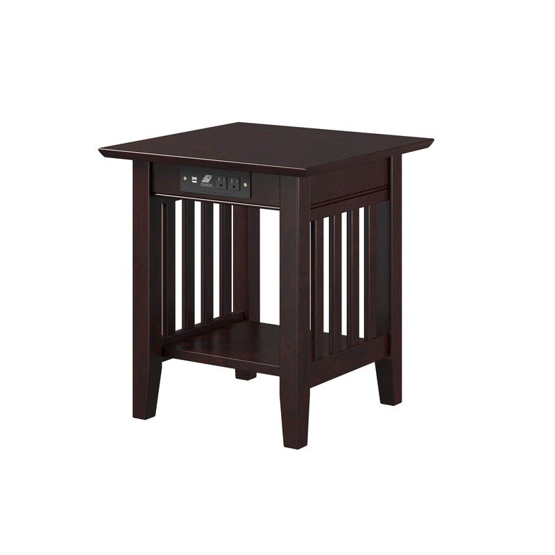 Functional and fashionable our Mission-style tables are sure to be a focal point for your living space. This timeless style is constructed from solid, eco-friendly hardwood and is fashioned with care and craftsmanship to perfectly accent your couch or living room chair, featuring two high- efficiency USB charging ports and two 110-volt AC power outlets for your convenience. With sturdy leg assembly and a durable high build five-step finish, this is furniture you'll love for a lifetime.