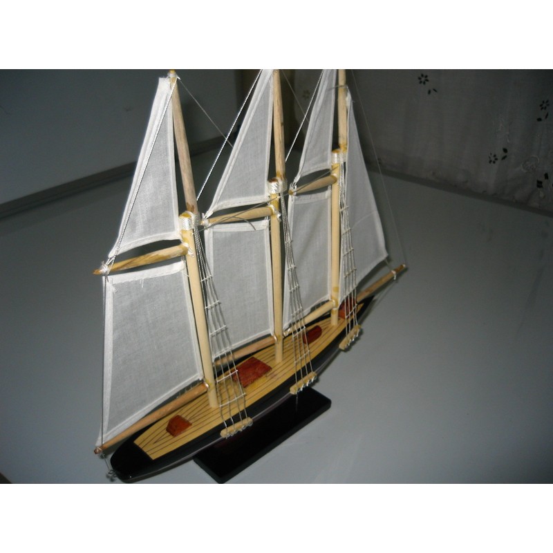 Atlantic Hand Made Wooden Model Sailing Ship 14" White Sail Require Minor Assembly