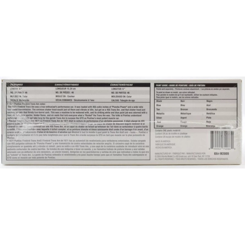Atlantis '71 Pontiac Firebird 1:32 Scale Plastic Model Car Kit M2009