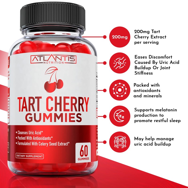 • Sleep Soundly Through The Night - Tired of restless nights? Grab our tart cherry gummy. These tart cherry gummies for adults don't just help reduce uric acid. They are a good source of melatonin, which is responsible for regulating sleep-wake cycles.