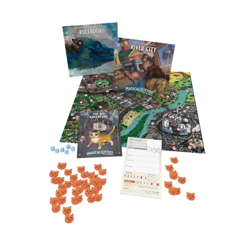 • Includes everything you need to play in the box - character sheets, dice, kitty treats, rulebooks, a hometown setting, and your first adventure!