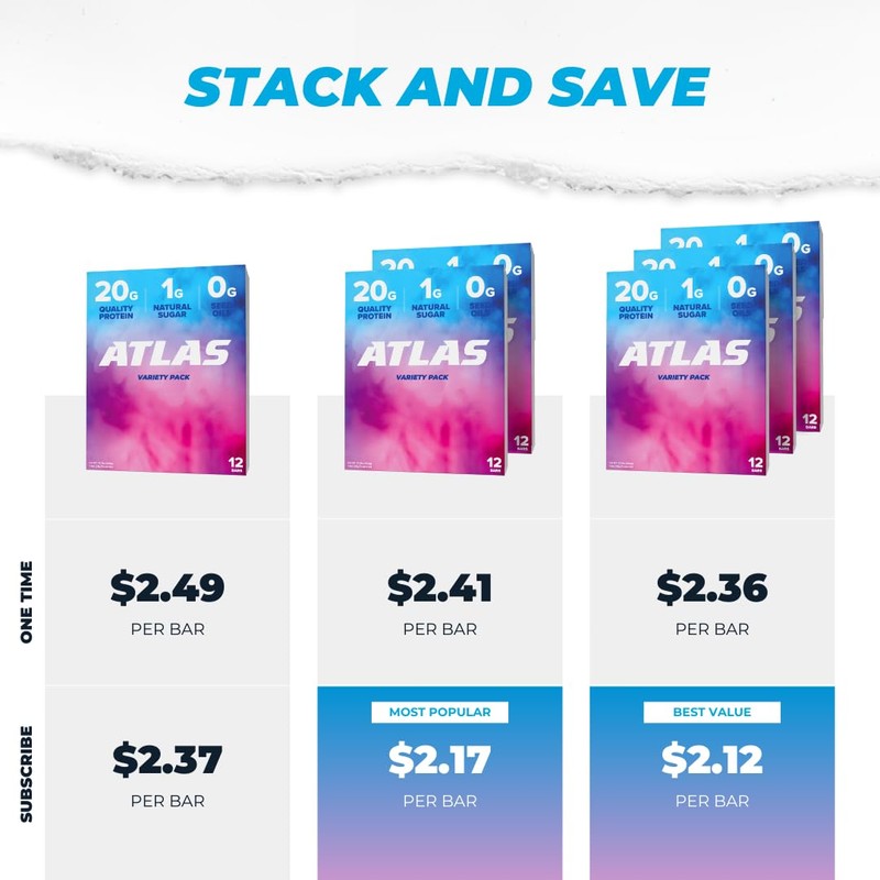 - EXCEPTIONAL NUTRITION: With 20g of quality protein and just 1g natural sugar, our bars are a nutritional powerhouse made from clean, natural ingredients that will keep you feeling your best throughout the day. NOTHING ARTIFICIAL: We believe in keeping things pure and simple. Our bars are free from artificial flavors, colors, preservatives, and sweeteners. With Atlas, you can rest easy knowing you're fueling your body with quality, natural ingredients.