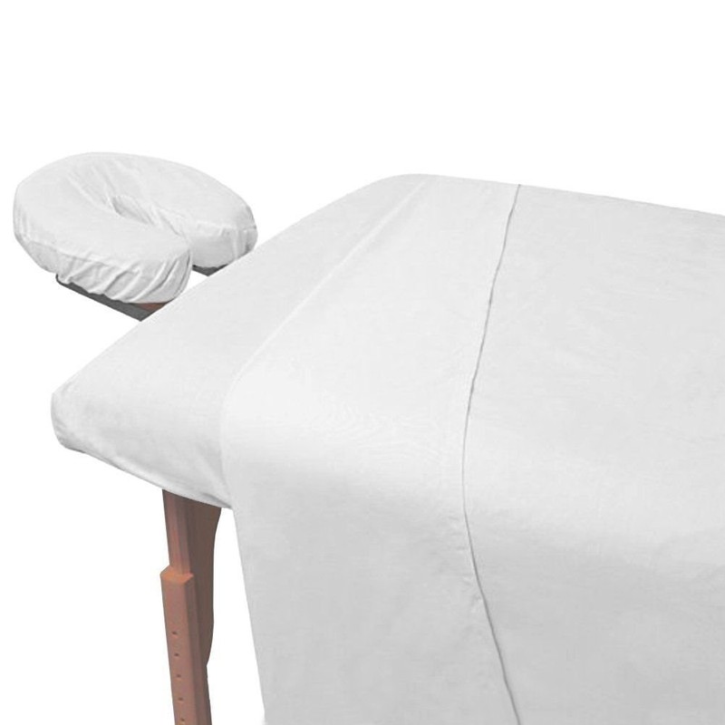 Atlas Solid White Premium Flat Bed Large Draw Sheets 66x104 Inch, 12-Sheets, Breathable, Durable Cotton Blend for Massage Tables, Nursing & Medical Facilities, Chiropractors - 180 Thread Count