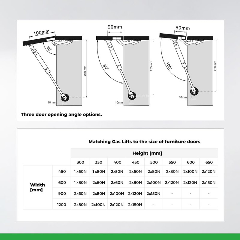 - Smooth and quiet opening - The ATM gas lift (50N) ensures comfortable and effortless lifting of furniture fronts and flaps.
