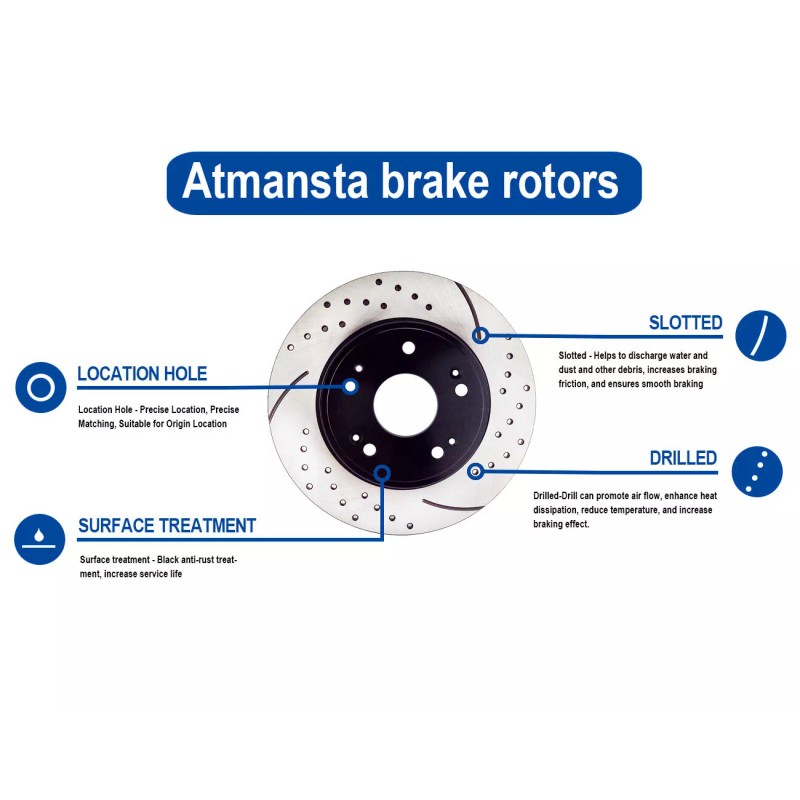 - exceptional performance drilled and slotted brake rotors,designed to obtain peak performance under all braking conditions