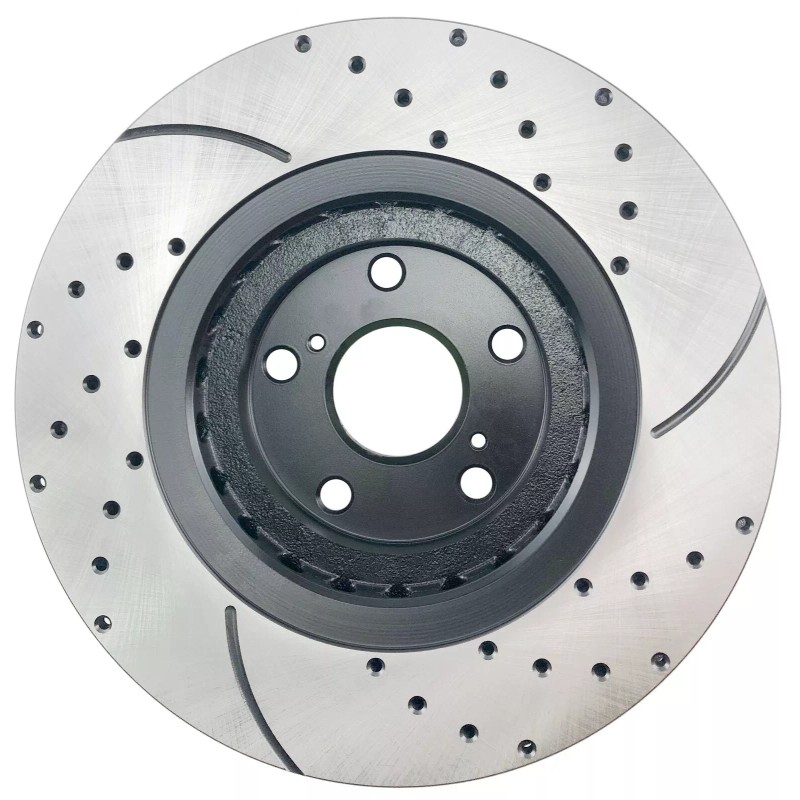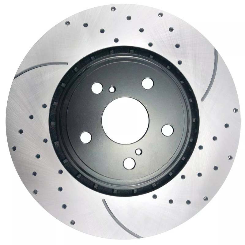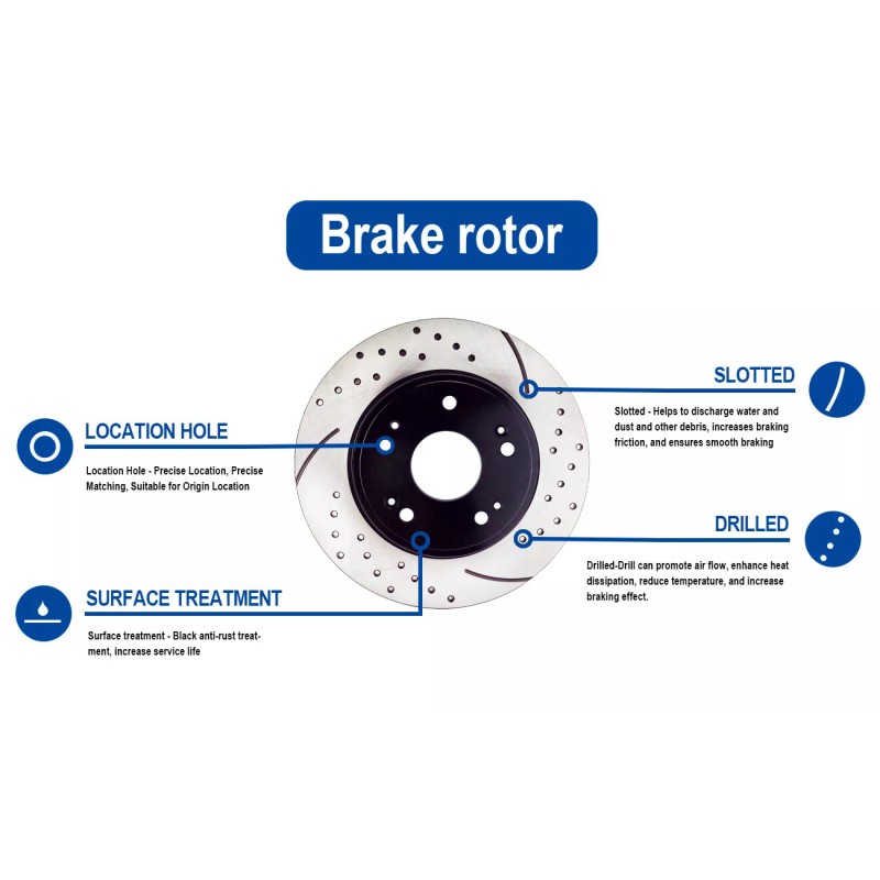 - two front slotted & drilled rotors and four front brake ceramic pads included