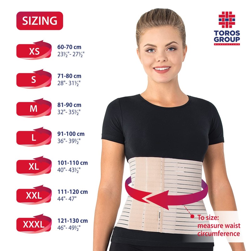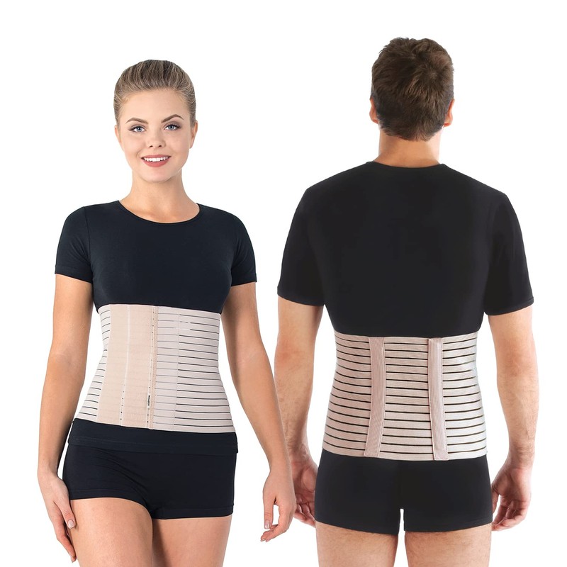 Breathable elastic abdominal support binder decreases pressure and provide excellent support to the abdomen, waist and jumbo-sacral areas. Speed up recovery after abdominal hernia or any other surgery in the abdominal area. It gives excellent abdominal / back support and true slimming effect. Evenly distributed pressure to the abdomen, waist and lower back. Speed up recovery after a C-section. Improve balance and redistribute weight so you return to your prepregnancy shape sooner.