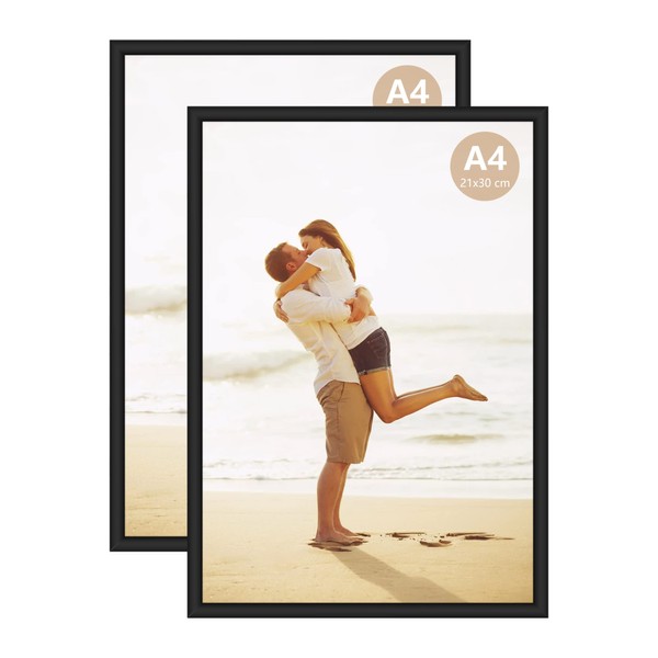 ATOBART A4 Photo Picture Frame, 21 X 30 CM Aluminum Black Certificate Frames for Wall Tabletop Display Horizontally or Vertically, Set of 2