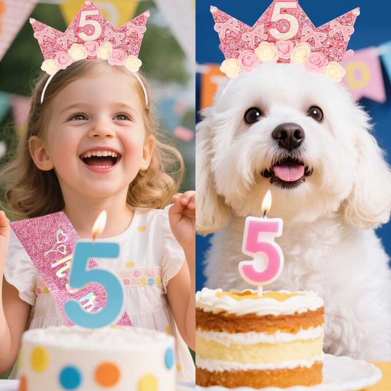 - 【5th Birthday Decorations】5-year-old happy birthday party hair band and sash for your girl’s birthday celebration. Put on this birthday accessory and take a photo, leaving a precious memory on your girl's big day.