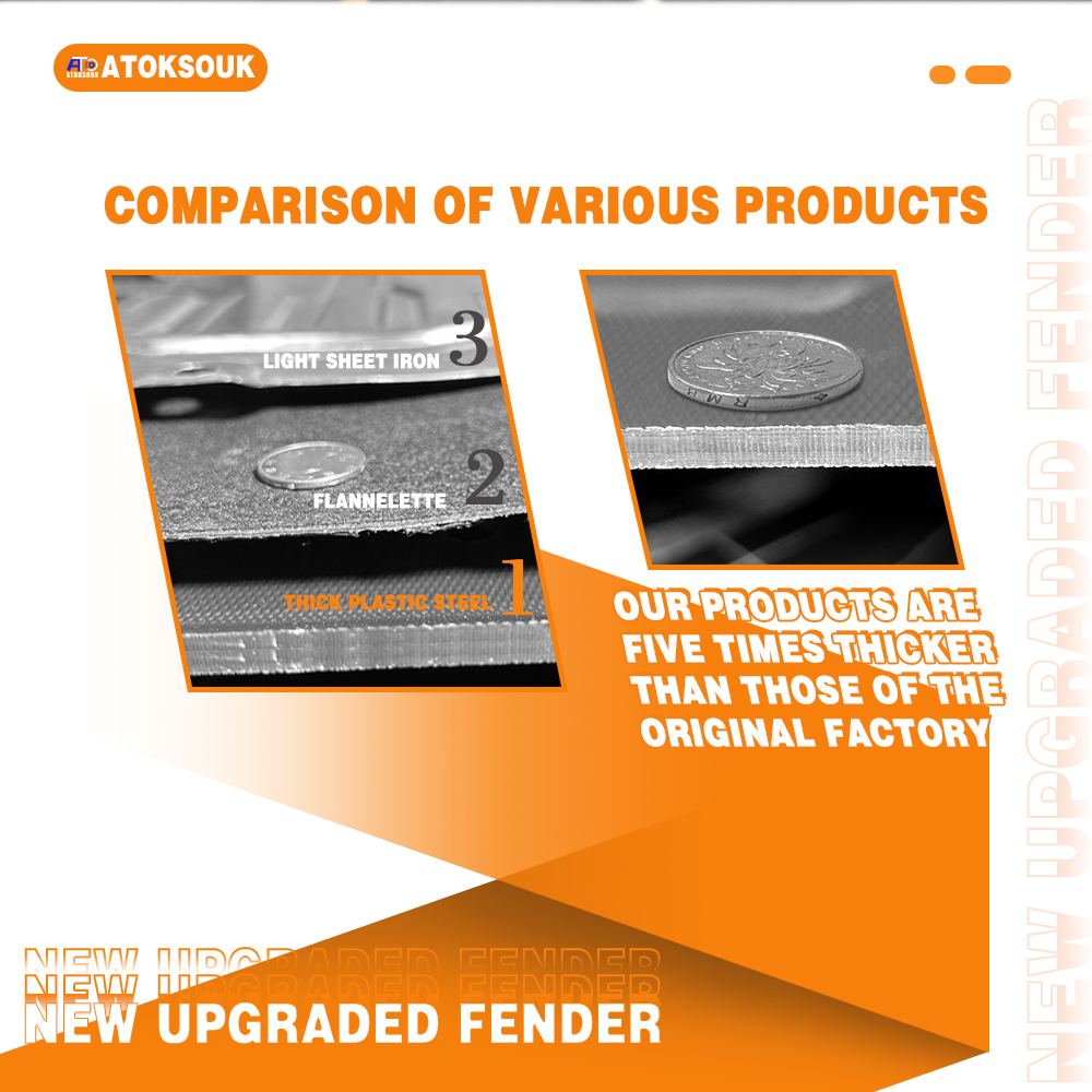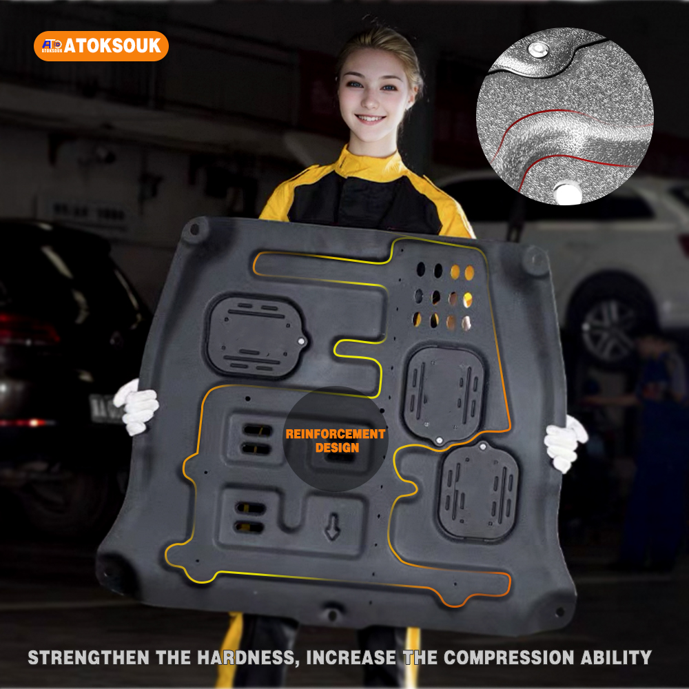 The original plate problem is that too thin ,broken down, easily falling off, and the hardness is not enough. To solve these problems,The new engine splash shield professionally designed . The steel beam design is to increase its hardness.
