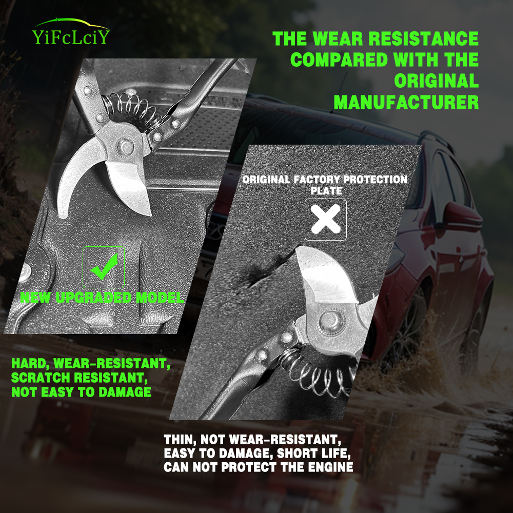 The original plate problem is that too thin ,broken down, easily falling off, and the hardness is not enough. To solve these problems,The new engine splash shield professionally designed . The steel beam design is to increase its hardness.