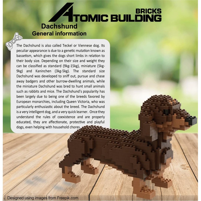 Atomic Building Dachshund/Teckel brown dog. Figure to assemble with nanoblocks. 798 pieces.