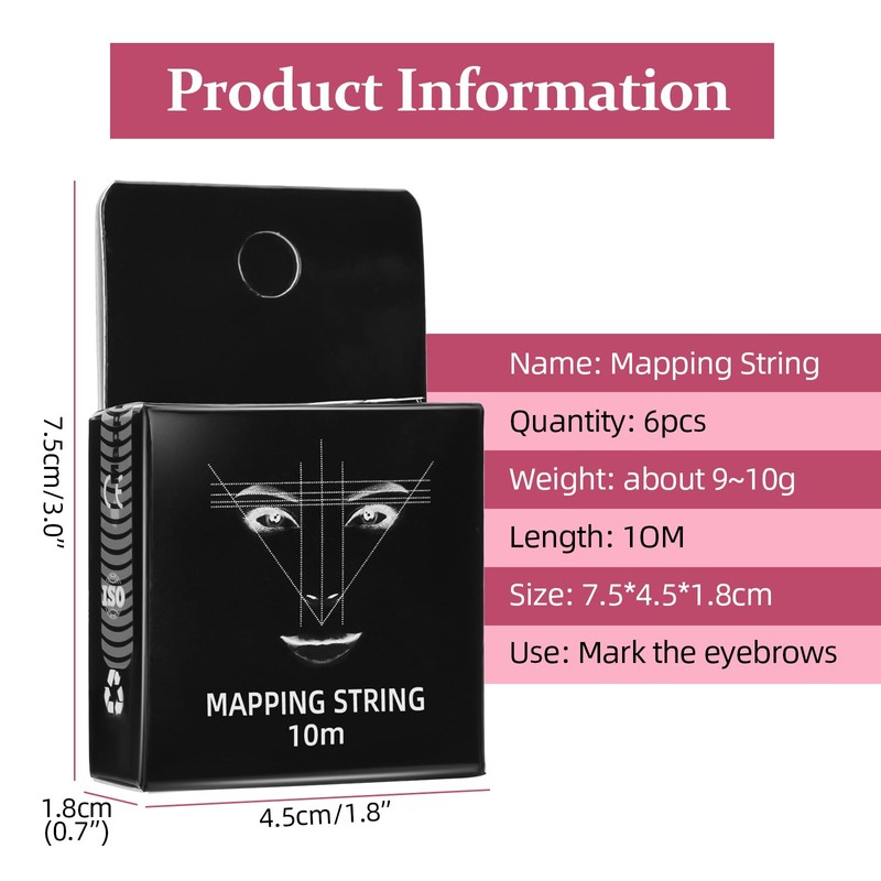 • ★ Pre-dyed – package box contains 6 x eyebrow mapping strings. All eyebrow mapping strings are pre-marked with hypoallergenic cosmetic grade pigments.