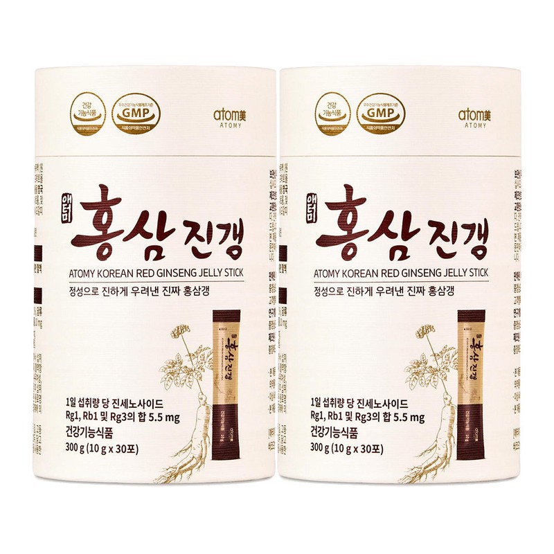 Atomy Red Ginseng Jingaeng 10g / 애터미 홍삼진갱 10g x 30포 x 2세트 양갱제형 무설탕 올리고당 진세노사이드 홍삼