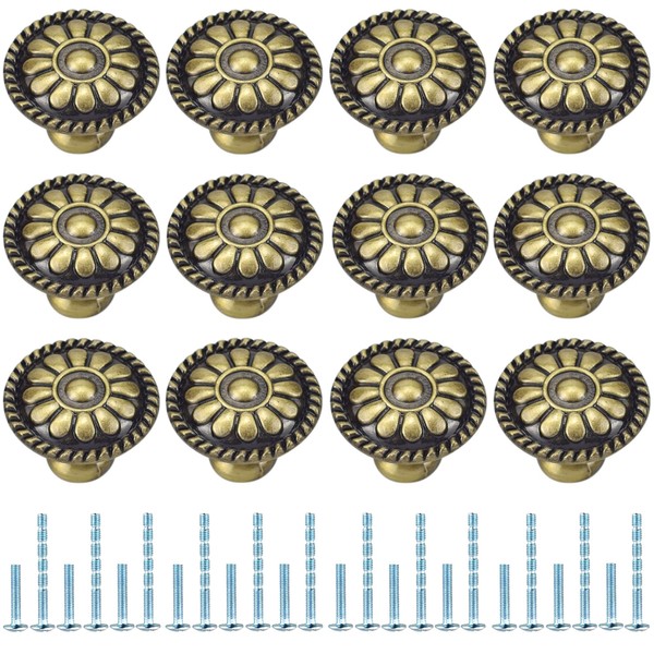 atopo Pack of 12 Drawer Knobs, Round Cabinet Handle with 2 Size Screws for Furniture, Cupboard, Dresser, Wardrobe, Perfect for Kitchen, Bathroom, Bedroom (Bronze)