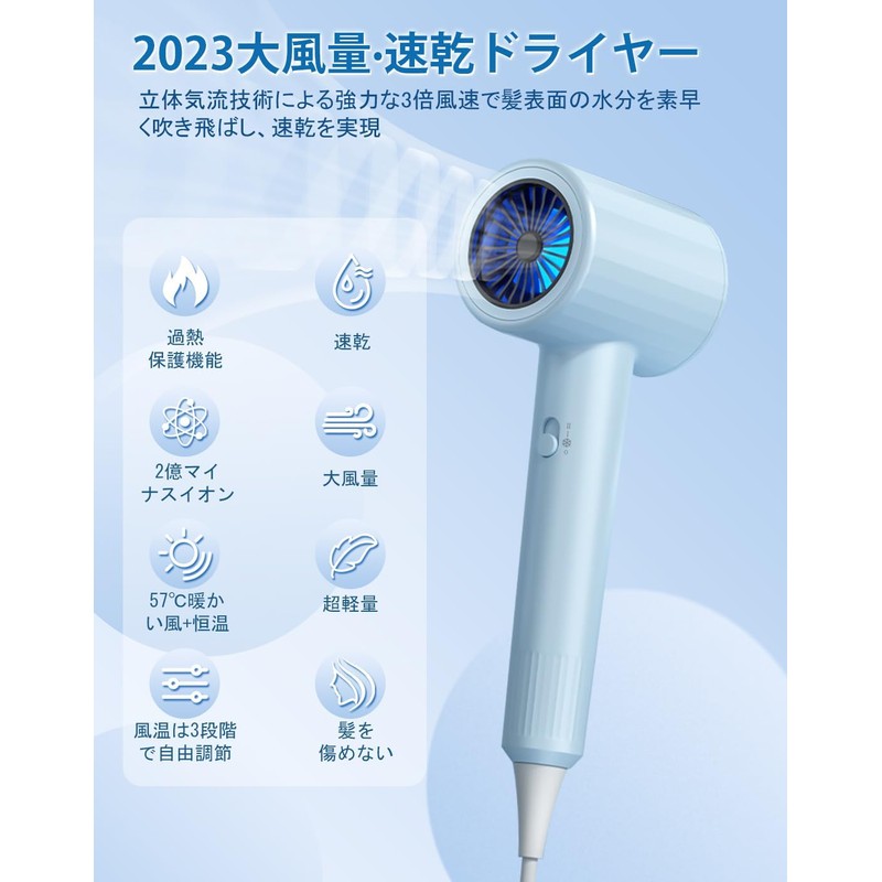 ATOTOP Dryer, Large Airflow, Quick Drying, Popular Ranking, 1800 W, High Concentration Negative Ion, Foldable, 3 Levels of Air Flow Adjustment, Lightweight, Overheating