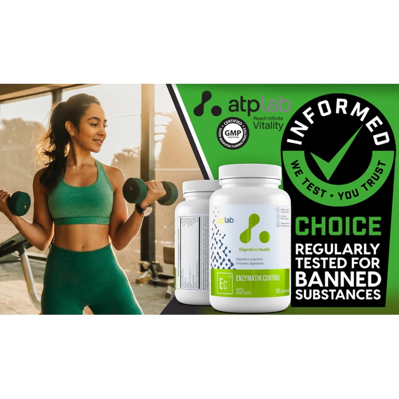 ATP LAB - Enzymatik Control 180 Capsules - Digestive Enzyme Supplement - Digestive Health - Gas Relief for Adults - Digestive Enzymes for Men and Women - 3rd Party Tested - 🍁Formulated & Made in Canada