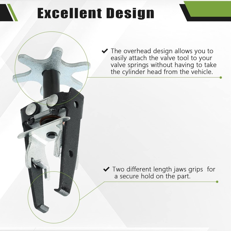 - Compressing springs can be difficult and dangerous, but this spring compressor features two different length jaws grips that easily attach to the valve spring for a secure hold on the part; The overhead design allows you to easily attach the valve tool to your valve springs without having to take the cylinder head from the vehicle for quick removal and installation