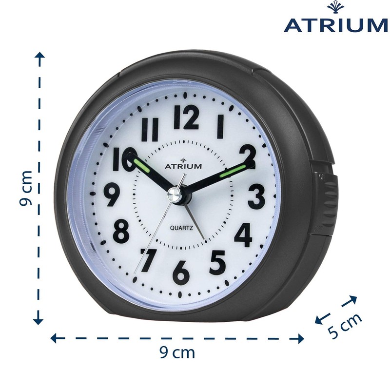 Der klassische Quarzwecker A240-7 von ATRIUM in elegantem Schwarz fügt sich angenehm und dezent in jede Wohnumgebung ein. Durch sein modernes aber dennoch zeitloses Design findet er sowohl im minimalistischen Schlafzimmer als auch im coolen Jugendzimmer seinen Platz.