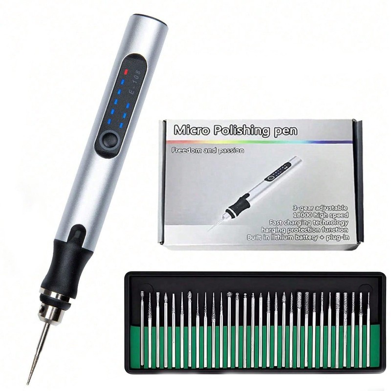 ATRONAW 1pc High Speed Nail Care Pen with 30 Drills, LCD Display, Electric Engraving Pen Grinder, Adjustable Speed polishing Pen, Lithium mini Electric Grinder for Acrylic and Gel Nails. (Silvery)