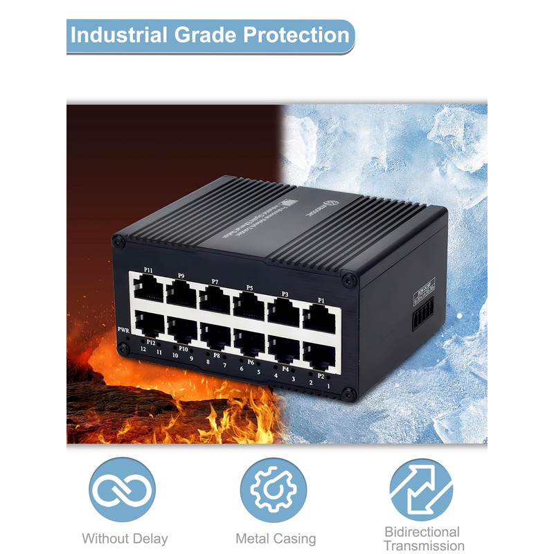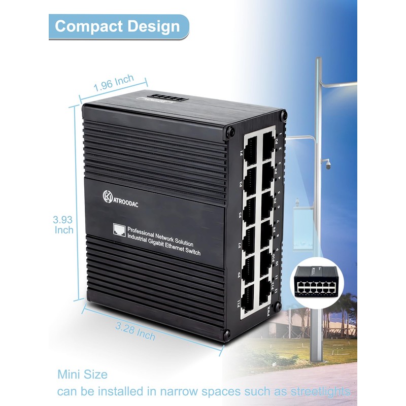 Atroodac 12-Port Mini Gigabit Network Switch, DIN-Rail Industrial, Unmanaged ...
