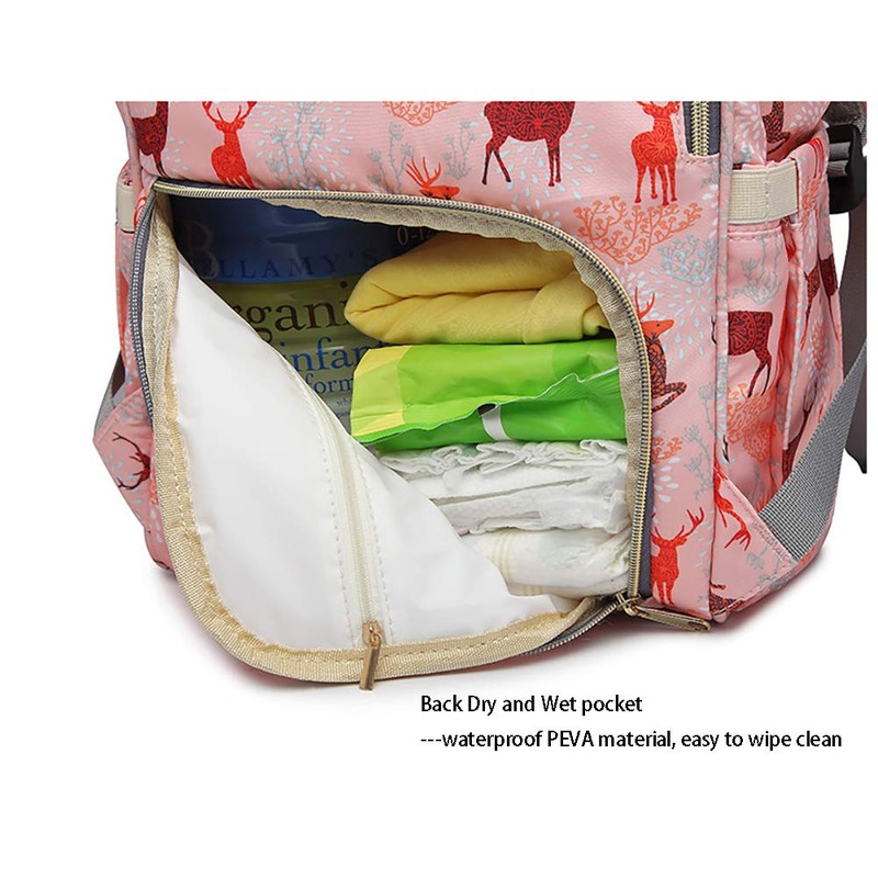 Atsabdas Diaper Bag Backpack for Mom Dad, Maternity Changing Bag Diaper Backpack with Stroller Straps(deer grey)