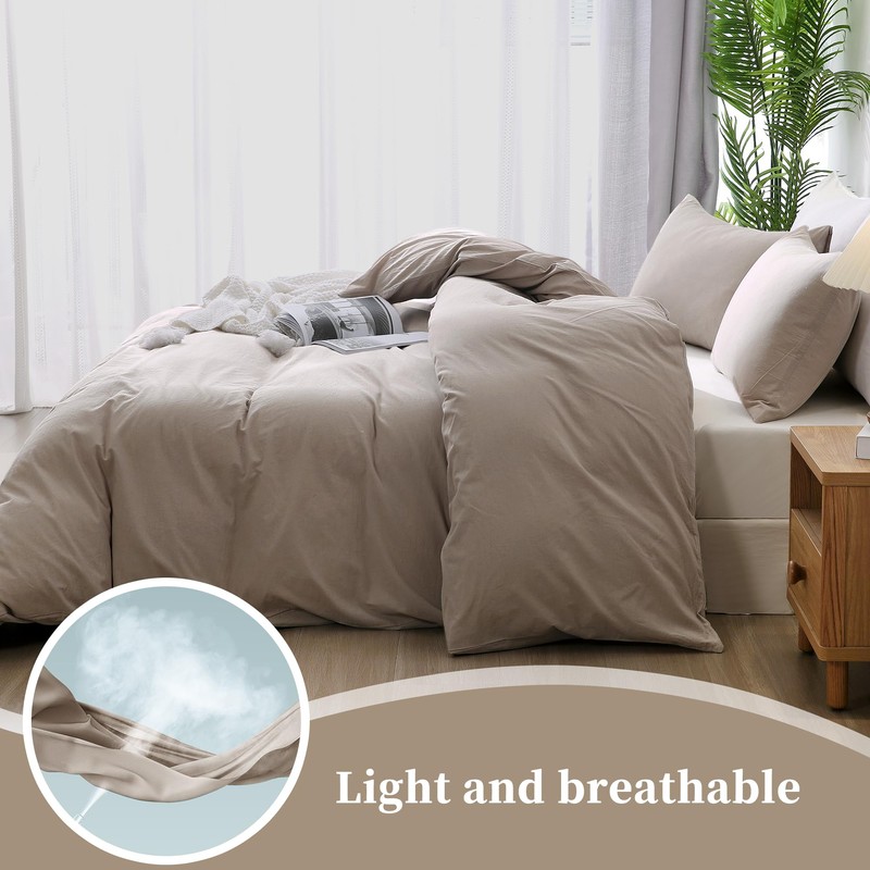 - The duvet cover set is crafted from 100% washed cotton, offering a unique linen-like texture paired with the softness of cotton. Certified by OEKO-TEX, it ensures excellent breathability, keeping you warm in winter and cool in summer. Its fresh and clean feel makes it perfect for year-round comfort.