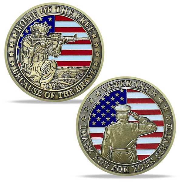 AtSKnSK Veterans Challenge Coin Thank You for Your Service Military Coin (Kneel Down&Salute Veteran)