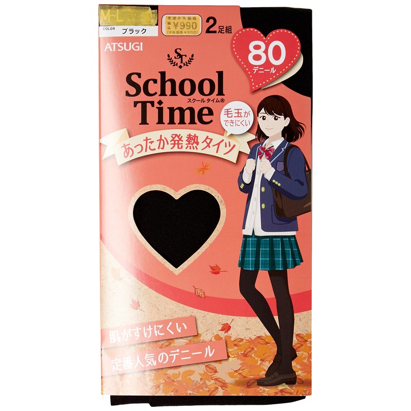 Atsugi FP90822P School Time Tights 80 Denier Girls', Black