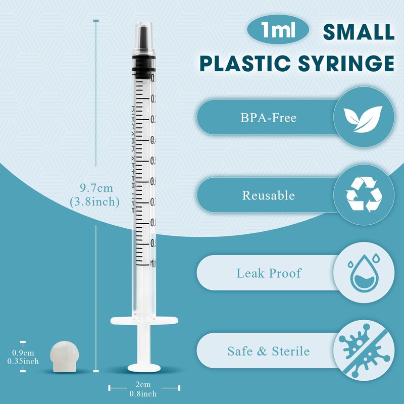 - 【Measurement Marking】: The 1ml sterile syringes with caps are designed with clear volume markings on the side, which is easy to read and measure liquids, have proper size for giving liquid to your dog, cat, and other smaller pets.