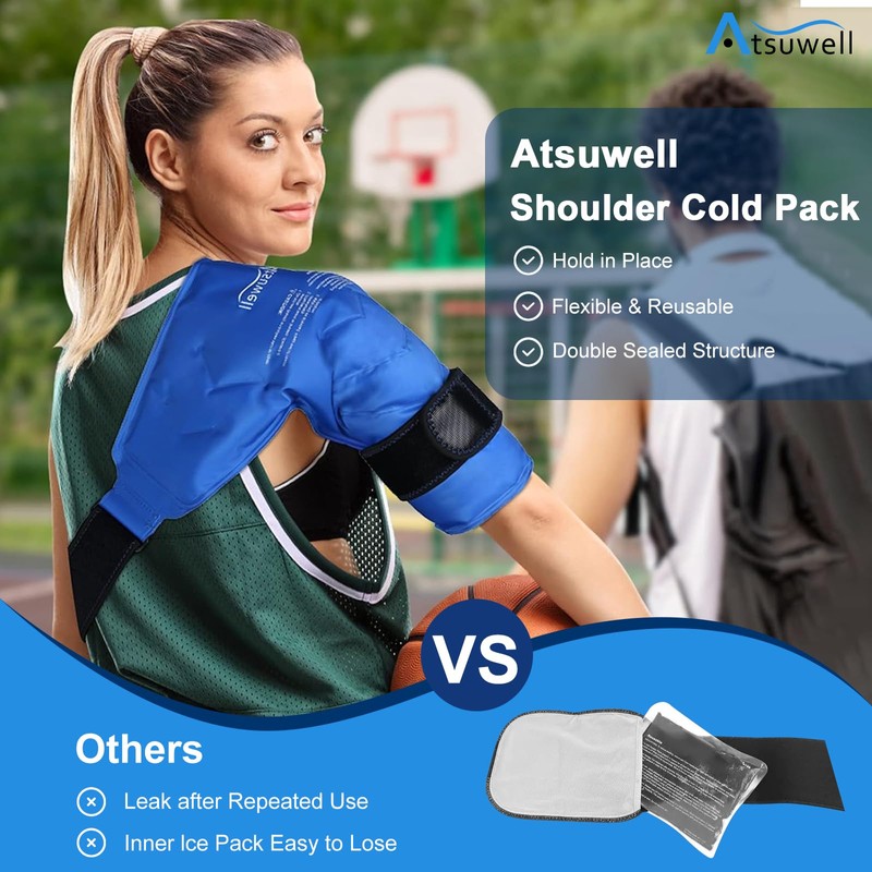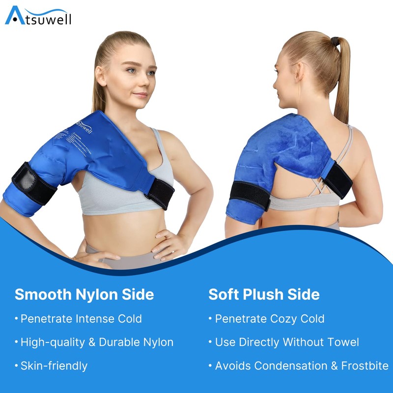 - Durable and Leakproof Gel Ice Pack: Atsuwell reusable arm ice pack fits the right or left shoulder. Our ice wraps for shoulders with premium material, unique style, and fine craft details, make this shoulder wrap a great present for your loved ones.