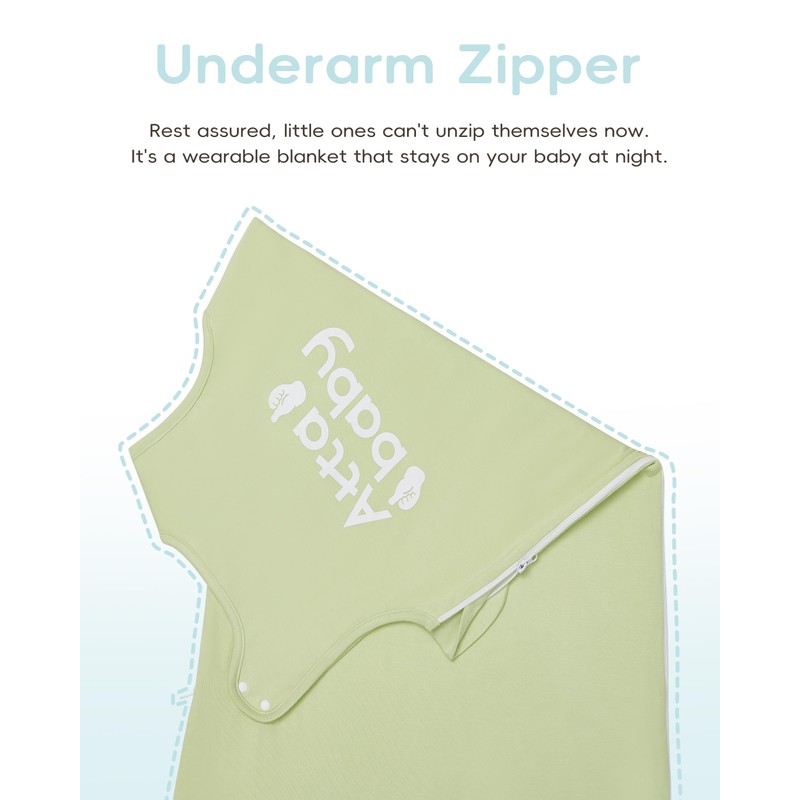 ATTABABY Sleep Sack 0-6 Months, Easy to Wear Side Opening & 2-Way Zipper Baby Wearable Blanket for Newborns, 0.5 TOG Breathable Rayon Made from Bamboo Infant Sleep Bag, Pastel Green