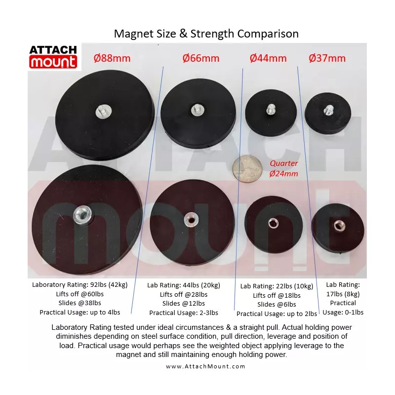 AttachMount 88mm Threaded Magnet for Ridgid R8694620 LED Work Light 1/4-20" Male Thread