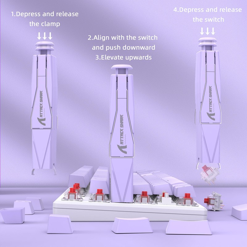 ATTACK SHARK KS01 2-in-1 Switch Puller Keycap Puller for Mechanical Keyboard,304 Stainless Steel Puller,Switch DIY Tool,Easily Remove Replacement Gaming Keyboard(Purple)