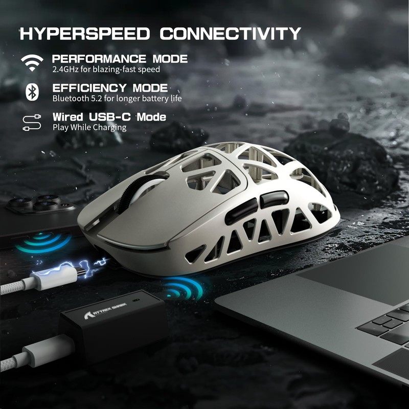 - 【HYPERSPEED-Konnektivität】Bleiben Sie in Verbindung, bleiben Sie unschlagbar - Mit der HYPERSPEED Wireless-Technologie bietet der R2 vielseitige Verbindungsoptionen, von ultraschnellen 2.4G-Verbindungen bis hin zu flinken Bluetooth-Verbindungen und sogar einer stabilen kabelgebundenen Verbindung. In Verbindung mit der langen Batterielebensdauer von 200 Stunden sorgt diese Maus dafür, dass Sie immer bereit sind und immer dominieren.