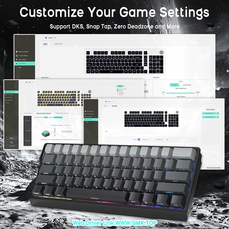 • 【Ultra-Fast Magnetic Switch Keyboard with 8K Polling Rate】The MAMBASNAKE X60HE keyboard features adjustable Hall effect magnetic switches (0.1mm-3.2mm actuation) for instant, debounce-free response. With an 8000Hz polling rate and 128KHz scan rate, every keystroke is registered with exceptional speed and accuracy, giving gamers a true competitive edge.
